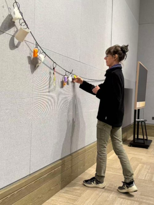 本次展览中,她特别在现场创作了一件大型墙饰,悬挂于空间之中,编织起巴黎(她的出发地)、景德镇(她于2025年秋季驻留之地)与昆明(作品的目的地)之间的联系。《墙上之饰》强调作品所占据的空间,提前标记其归属,仿佛是对场所的未来记忆,是一种空间取代身体的转移。在展览期间,它化身为游牧的身份与多重记忆的承载者,空间、墙壁及其组成的元素,因而成为不同概念投射的场域: 首饰在其中成为更大文化流动网络中的一个节点。