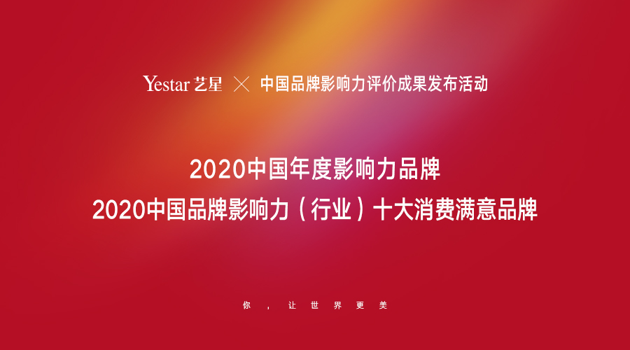2020年5月30日,第七届中国品牌影响力评价成果发布活动在北京召开,Yestar艺星荣获 “2020中国年度影响力品牌”和“2020中国品牌影响力(行业)十大消费满意品牌”两大奖项。