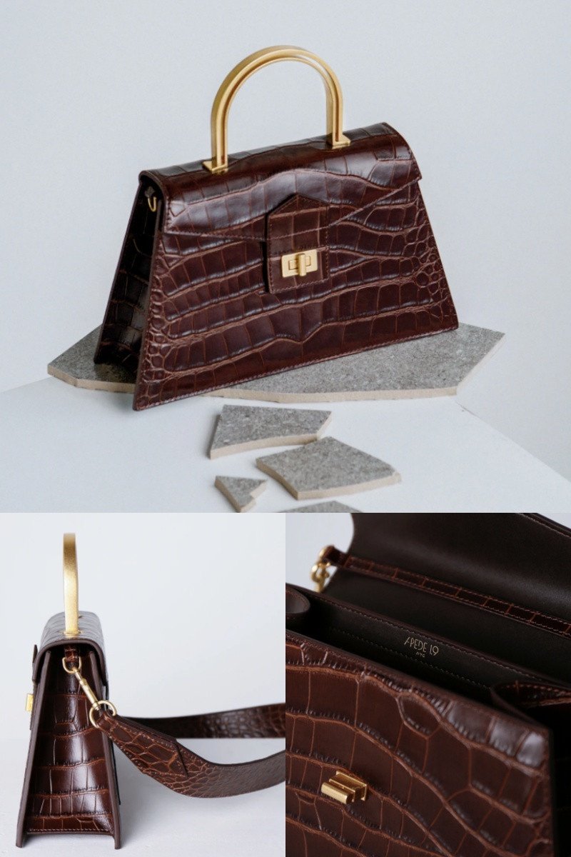 在《幸福,触手可及》中,周放也有好几颗apede mod的包款。像是这款皮革梯形方包,双线金属手柄的灵感来自20年代的装饰艺术设计,再由深铜色的牛皮制成包身,大容量的空间连一本迷你书都能放!同时配有肩带,不仅能让穿搭更多元丰富,实用度也提高许多~