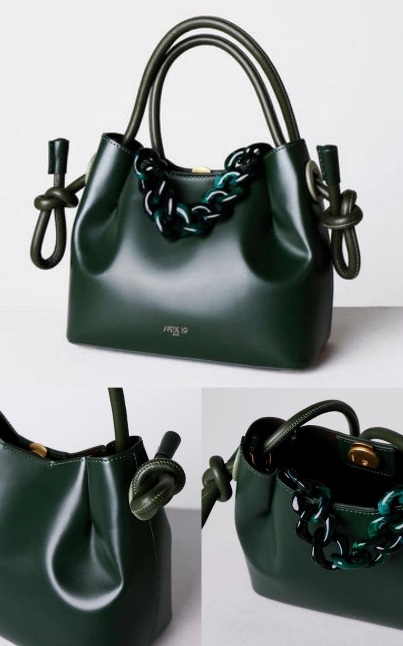 《幸福,触手可及》迪丽热巴 包款2:apede mod Mint Knotty 墨绿色打结水桶包
