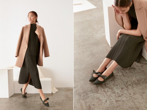 裸色完美适配多样的色系穿搭而不显突兀。当率性的尖头平底鞋遇上温暖的驼色人字纹,独显韵味,搭配浅色条纹OL套装,在整体知性风格的基础上增添了些许灵动。而优雅的芭蕾平底鞋更是以四款全新配色——大洋蓝、奶茶色、纯黑色、驼色人字纹,展现出深邃的高级质感。其中,在秋冬备受青睐的奶茶色最值得一提,应季的暖色温属性,让日常穿搭变得更加触手可得,无论是搭配一袭阔腿长裤还是缎料长裙,都显得融洽、和谐。