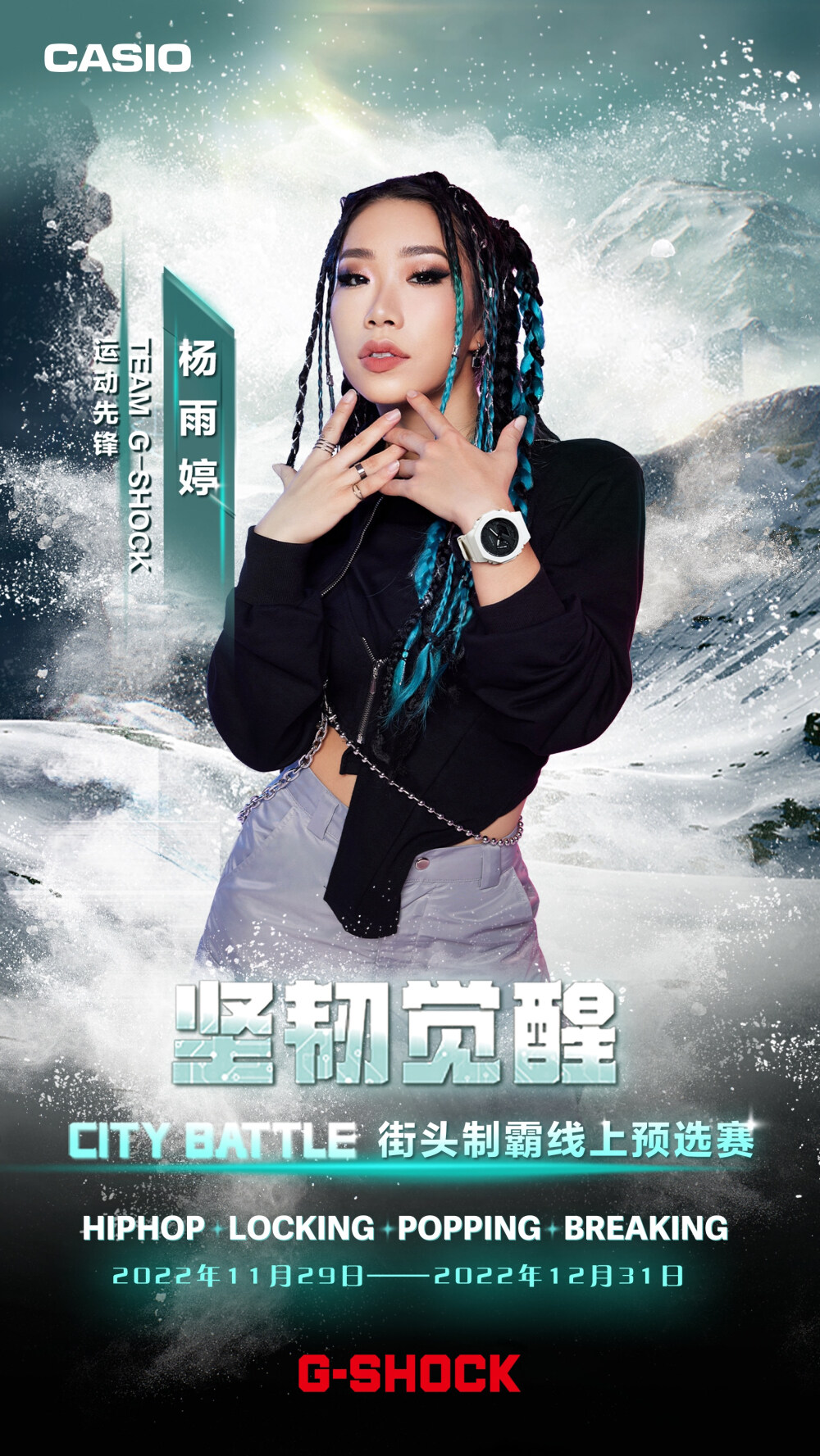 本次G-SHOCK特邀潮流代言人王鹤棣一同发起全新一季CITY BATTLE街头制霸,佩戴「2100」系列表款高能出镜!诞生于街头的G-SHOCK始终都在探索并传递街头文化。自2016年起,G-SHOCK以街舞BREAKING为原点打造自有街头文化赛事IP ——CITY BATTLE城市对抗赛,并在不断进化中探索BMX、单板滑雪等更为多元的极限运动,发掘更多敢于挑战自我的街头爱好者!时至今日,CITY BATTLE已然成为了一年一度的街头盛事!越来越多的人加入这场坚韧之战。每一场拼尽全力的Battle,都是TOUGHNESS精神的具象演绎!本季,G-SHOCK再度以坚韧态度激活城市,新增Locking、Hip-Pop、Popping三种舞种重磅开启2022 G-SHOCK CITY BATTLE街头制霸!期待源于热爱,敢于挑战的你一起燃爆街头!